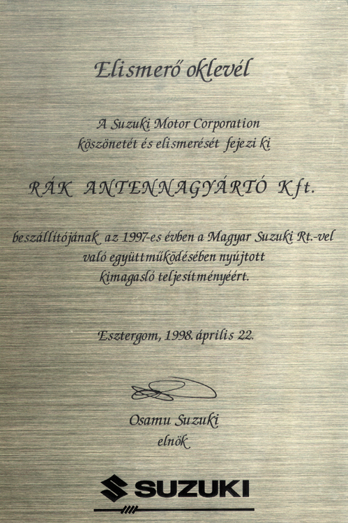 A Magyar Suzuki ZRt. -nek 1992 óta vagyunk a beszállítója.